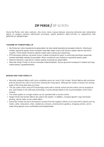 Doruk Zip Perde; otel, kafe, restoran, villa, konut, teras, kış/yaz bahçesi, alışveriş merkezleri gibi mekanlarda
